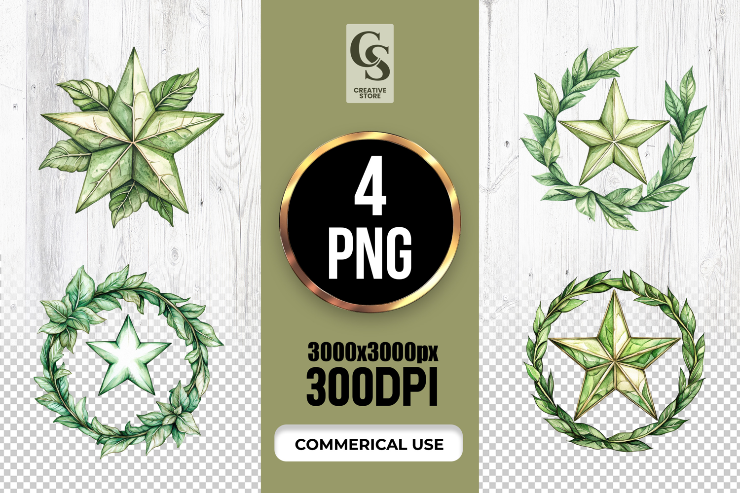 4 Rustic Greenery Star Wreath Clipart Sublimation PNG Files Perfect for Greeting Cards, Invitations, Junk Journal, Party Decor, Scrapbooking and many other craft projects.