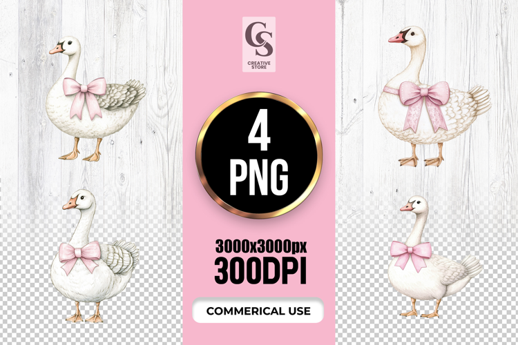 4 Vintage White Goose with Pink Bow Clipart Sublimation PNG Files Perfect for Greeting Cards, Invitations, Junk Journal, Party Decor, Scrapbooking and many other craft projects.