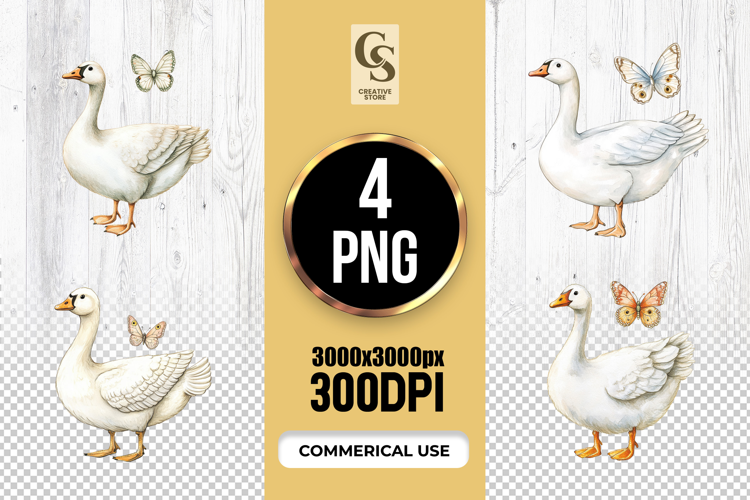 4 Vintage White Goose and Butterfly Clipart Sublimation PNG Files Perfect for Greeting Cards, Invitations, Junk Journal, Party Decor, Scrapbooking and many other craft projects.