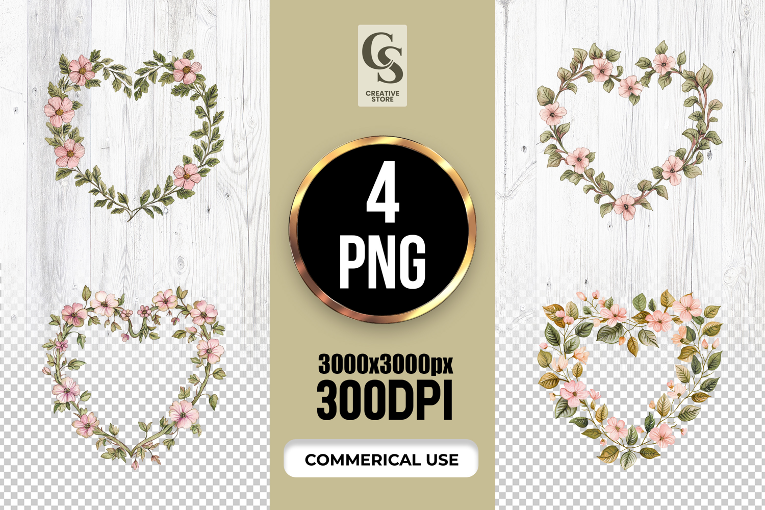 4 Watercolor Blush Floral Heart Clipart Sublimation PNG Files Perfect for Greeting Cards, Invitations, Junk Journal, Party Decor, Scrapbooking and many other craft projects.