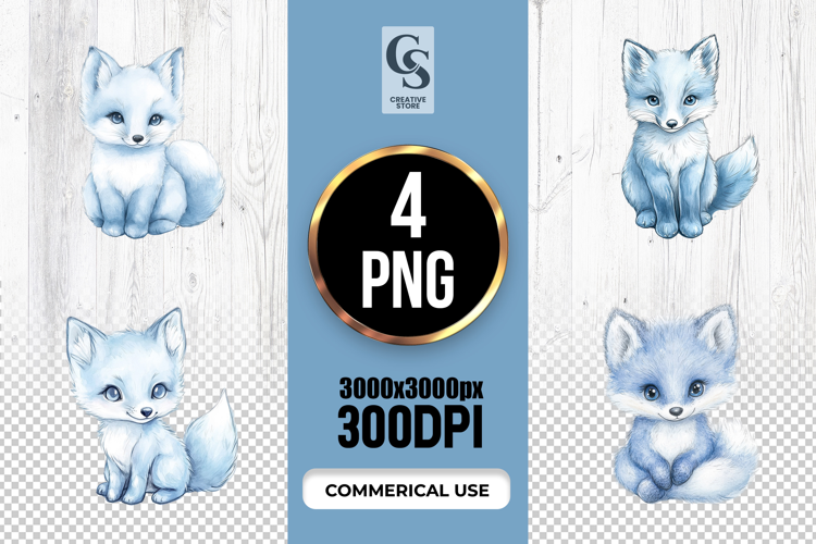 4 Cute Arctic Fox Clipart Sublimation PNG Files Perfect for Greeting Cards, Invitations, Junk Journal, Party Decor, Scrapbooking and many other craft projects.