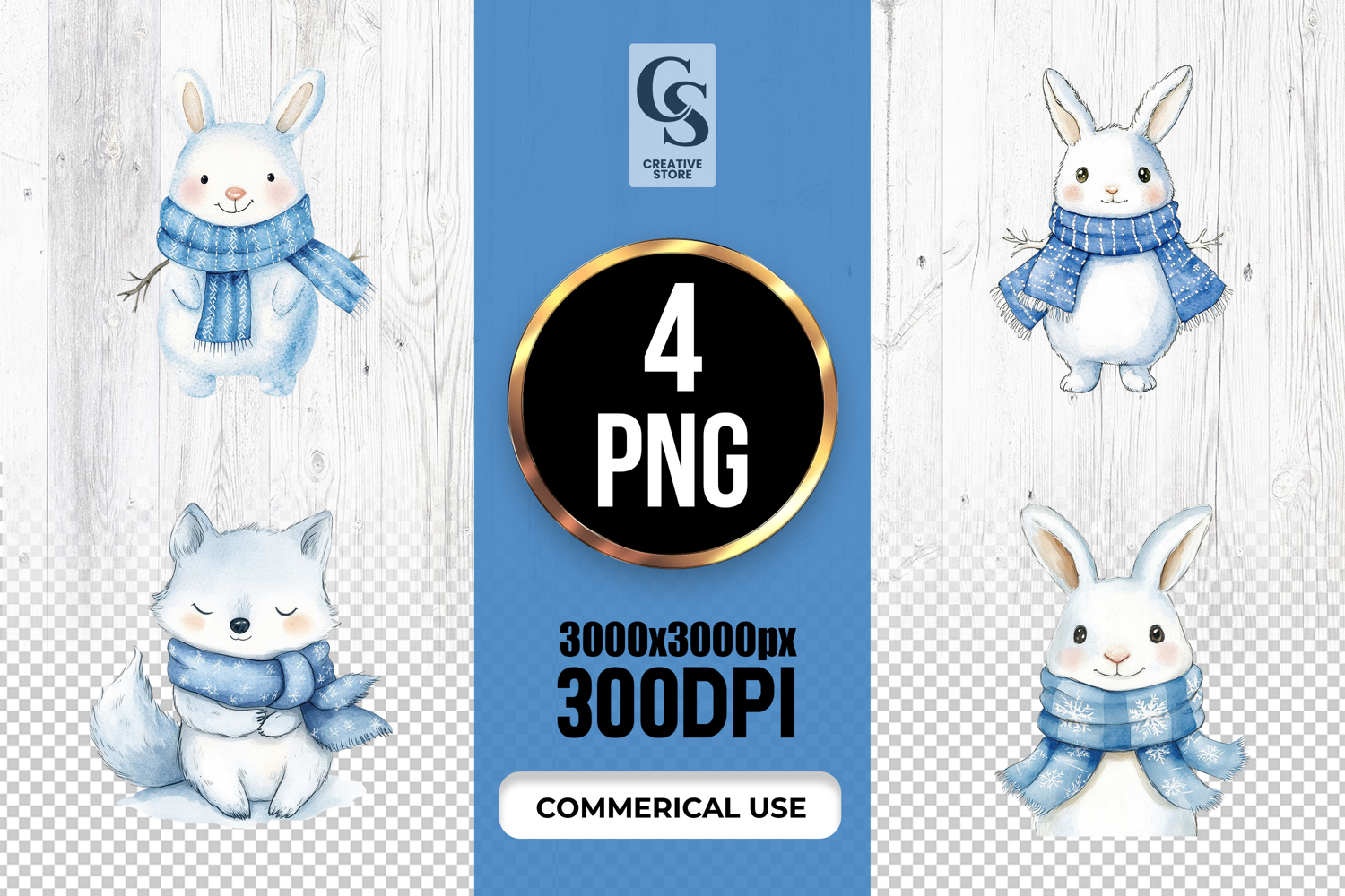 4 Cute Winter Bunny Clipart Sublimation PNG Files Perfect for Greeting Cards, Invitations, Junk Journal, Party Decor, Scrapbooking and many other craft projects.