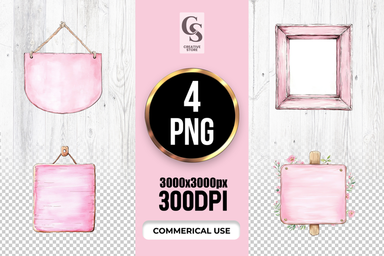 4 Pink Wooden Sign Clipart Sublimation PNG Files Perfect for Greeting Cards, Invitations, Junk Journal, Party Decor, Scrapbooking and many other craft projects.