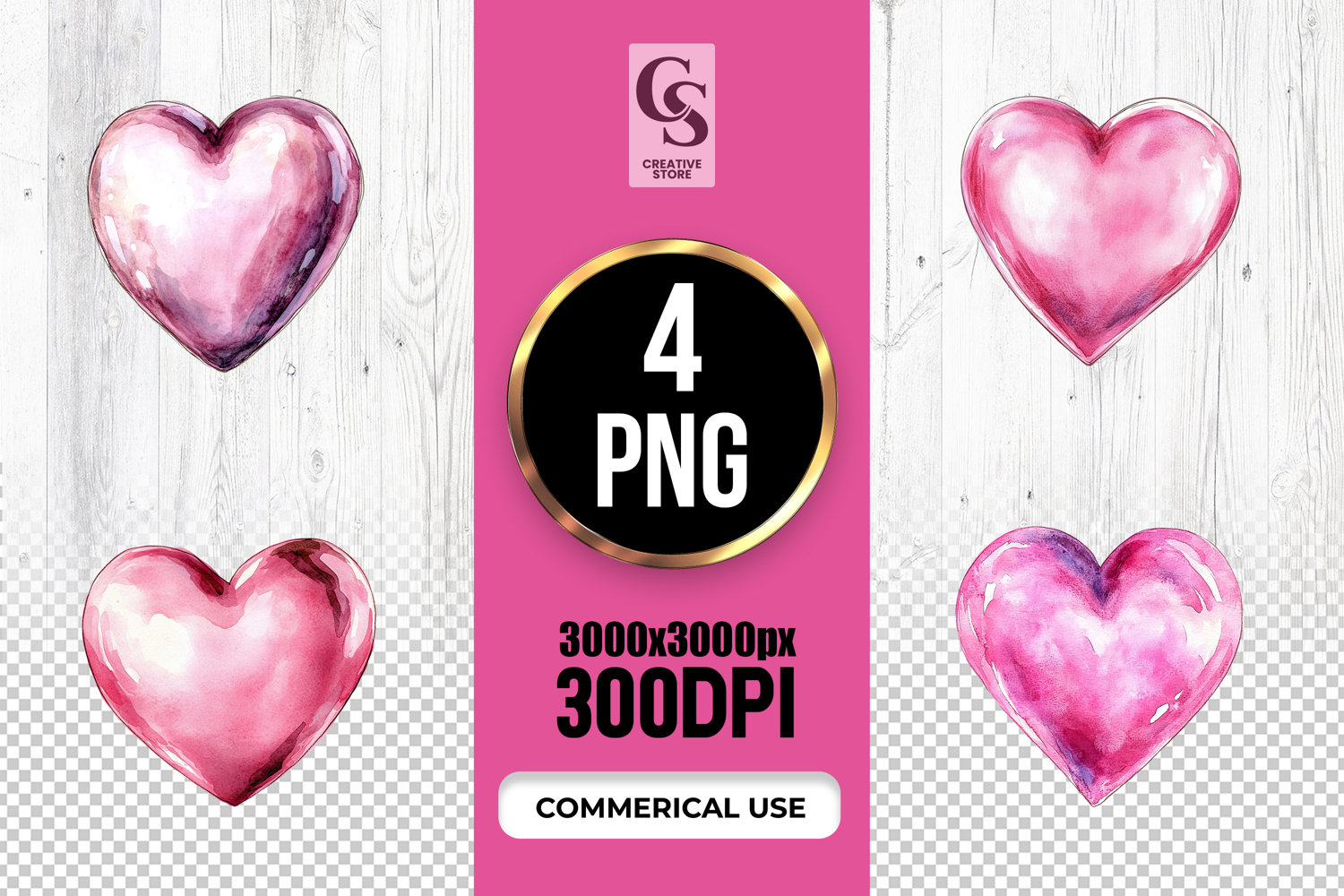 4 Pink Watercolor Heart Clipart Sublimation PNG Files Perfect for Greeting Cards, Invitations, Junk Journal, Party Decor, Scrapbooking and many other craft projects.