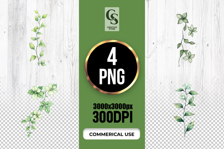 4 Watercolor Floral Vine Clipart Sublimation PNG Files Perfect for Greeting Cards, Invitations, Junk Journal, Party Decor, Scrapbooking and many other craft projects.