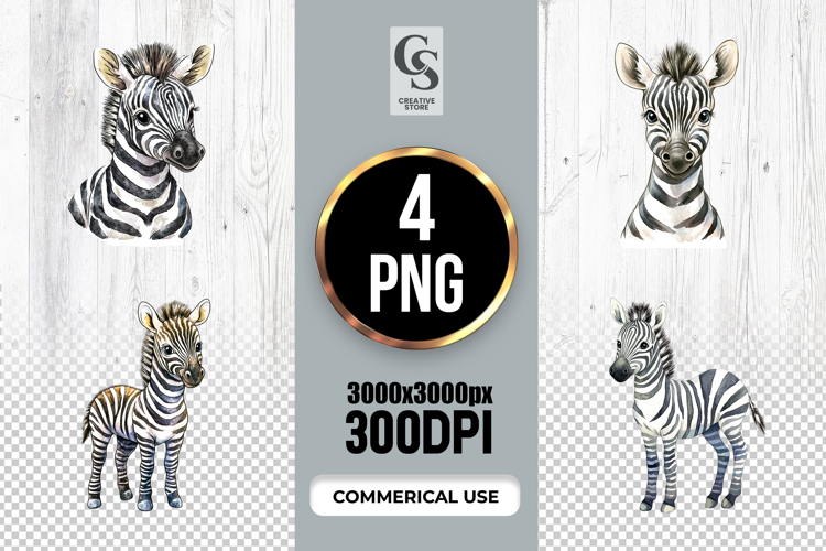 4Watercolor Baby Zebra Clipart PNG Files Perfect for Greeting Cards, Invitations, Junk Journal, Party Decor, Scrapbooking and many other craft projects.