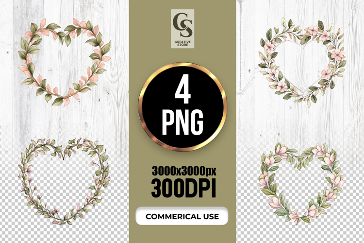 4 Minimalist Floral Heart Wreath Clipart Sublimation PNG Files Perfect for Greeting Cards, Invitations, Junk Journal, Party Decor, Scrapbooking and many other craft projects.