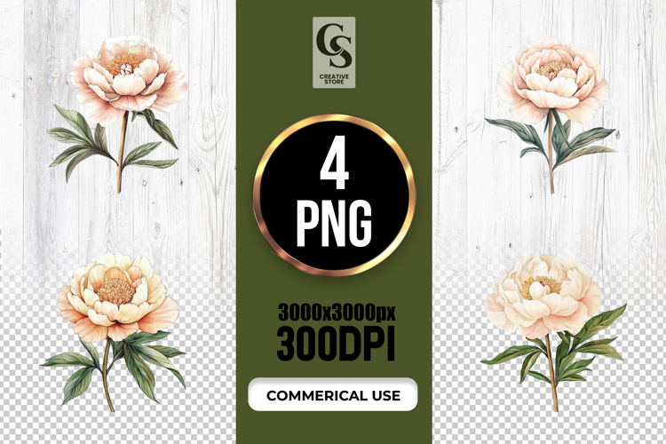 4 Blush Peony Watercolor Clipart Sublimation PNG Files Perfect for Greeting Cards, Invitations, Junk Journal, Party Decor, Scrapbooking and many other craft projects.