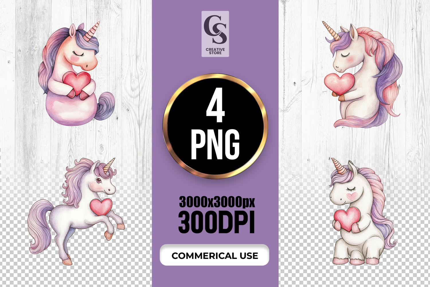 4 Watercolor Unicorn With Heart Clipart Sublimation PNG Files Perfect for Greeting Cards, Invitations, Junk Journal, Party Decor, Scrapbooking and many other craft projects.