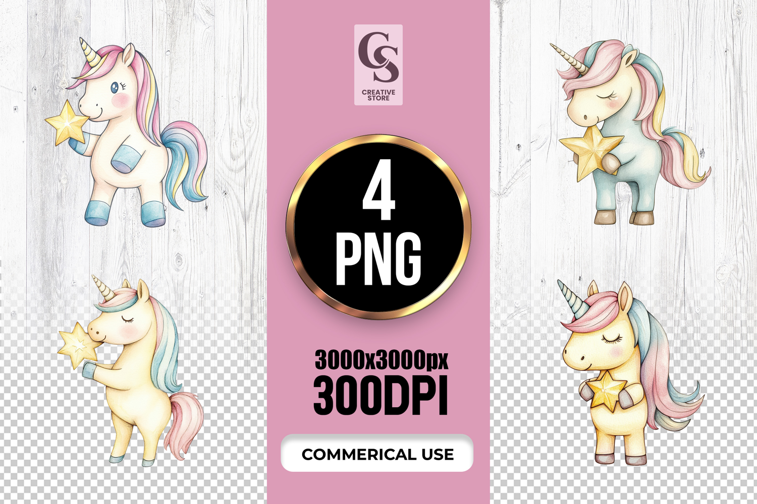4 Cute Unicorn With Star Clipart Sublimation PNG Files Perfect for Greeting Cards, Invitations, Junk Journal, Party Decor, Scrapbooking and many other craft projects.