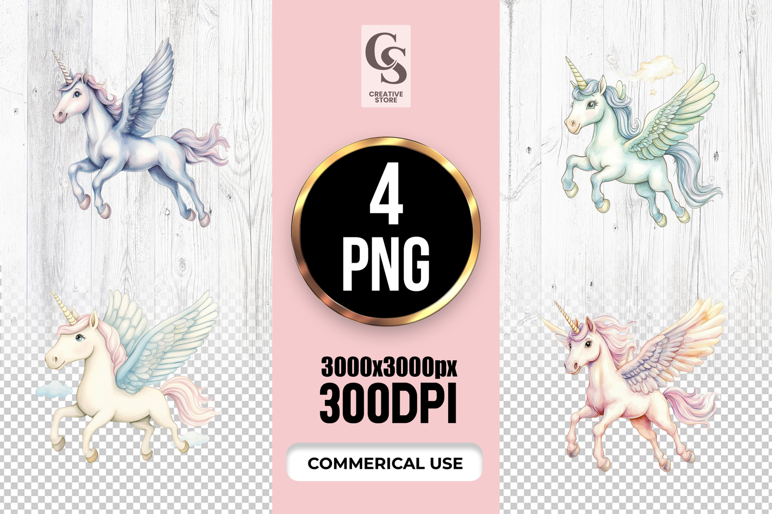 4 Winged Unicorn Pegasus Clipart Sublimation PNG Files Perfect for Greeting Cards, Invitations, Junk Journal, Party Decor, Scrapbooking and many other craft projects.