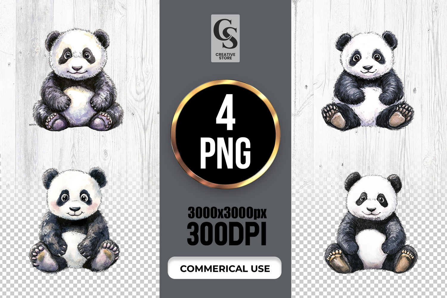 4 Cute Panda Watercolor Clipart Sublimation PNG Files Perfect for Greeting Cards, Invitations, Junk Journal, Party Decor, Scrapbooking and many other craft projects.