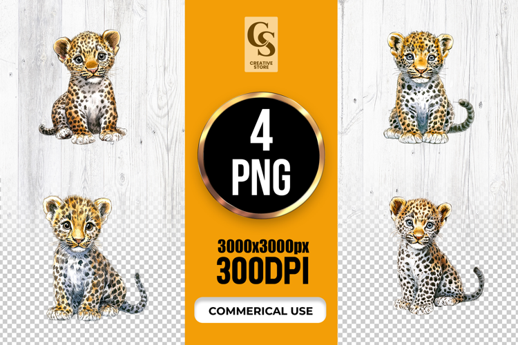 4 Watercolor Cute Leopard Cub Clipart Sublimation PNG Files Perfect for Greeting Cards, Invitations, Junk Journal, Party Decor, Scrapbooking and many other craft projects.