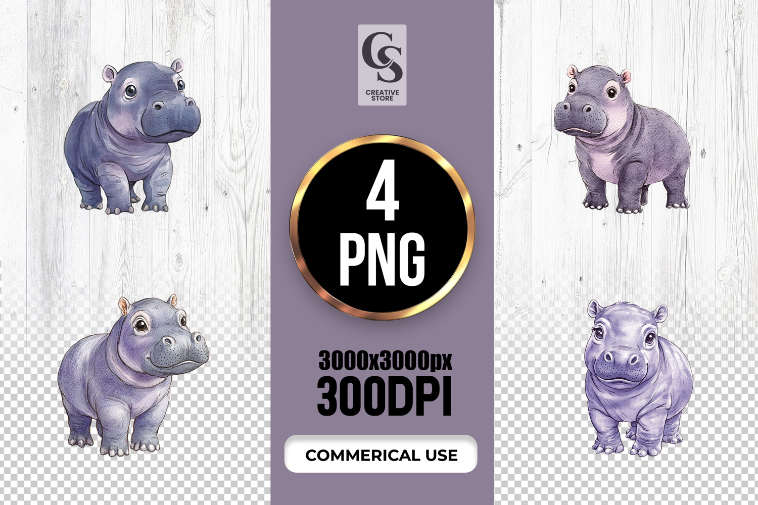 4 Watercolor Cute Hippo Clipart Sublimation PNG Files Perfect for Greeting Cards, Invitations, Junk Journal, Party Decor, Scrapbooking and many other craft projects.
