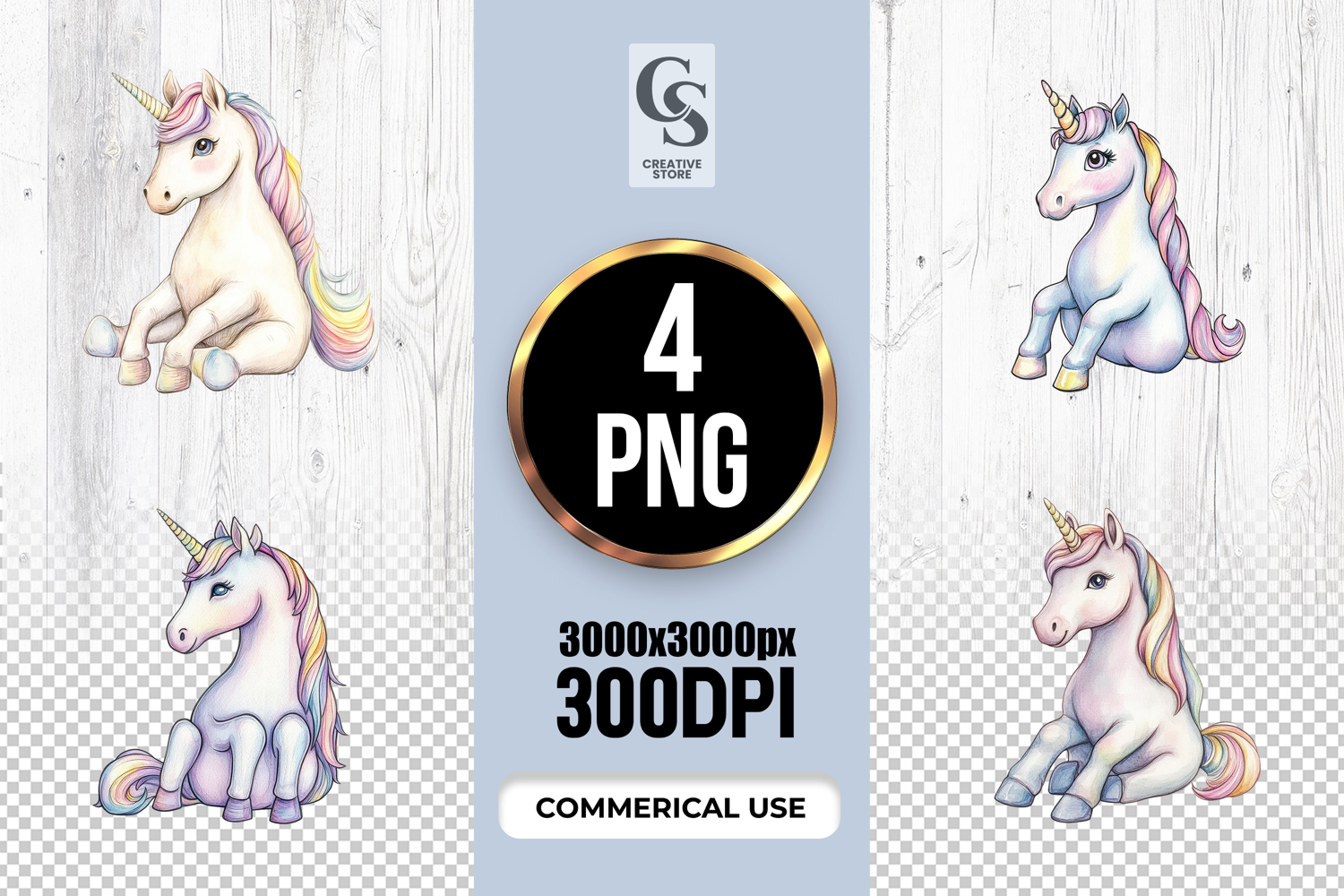 4 Watercolor Rainbow Mane Unicorn Clipart Sublimation PNG Files Perfect for Greeting Cards, Invitations, Junk Journal, Party Decor, Scrapbooking and many other craft projects .