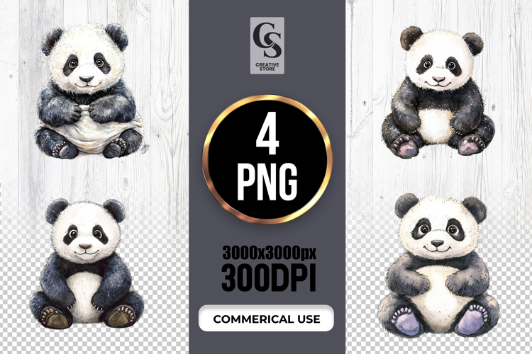 4 Cute Panda Bear Watercolor Clipart Sublimation PNG Files Perfect for Greeting Cards, Invitations, Junk Journal, Party Decor, Scrapbooking and many other craft projects .
