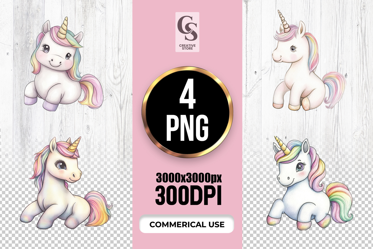 4 Rainbow Unicorn Watercolor Fantasy Clipart Sublimation PNG Files Perfect for Greeting Cards, Invitations, Junk Journal, Party Decor, Scrapbooking and many other craft projects .