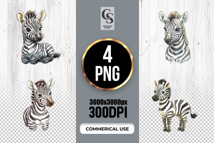 4 Cute Zebra Watercolor Safari Animal Clipart Sublimation PNG Files Perfect for Greeting Cards, Invitations, Junk Journal, Party Decor, Scrapbooking and many other craft projects .