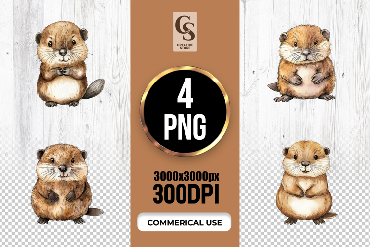 4 Cute Beaver Watercolor Woodland Animal Clipart PNG Files Perfect for Greeting Cards, Invitations, Junk Journal, Party Decor, Scrapbooking and many other craft projects .