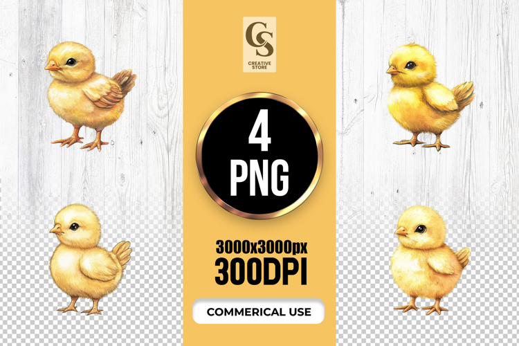 4 Cute Yellow Chick Watercolor Farm Clipart Sublimation PNG Files Perfect for Greeting Cards, Invitations, Junk Journal, Party Decor, Scrapbooking and many other craft projects .
