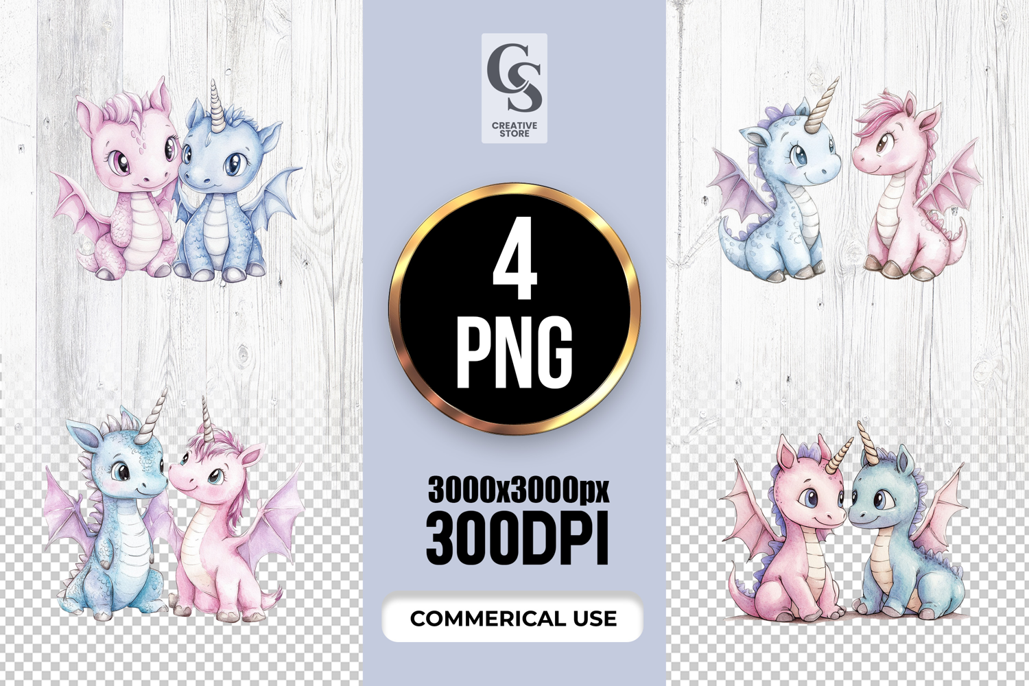4 Cute Unicorn Dragon Duo Clipart Sublimation PNG Files Perfect for Greeting Cards, Invitations, Junk Journal, Party Decor, Scrapbooking and many other craft projects .