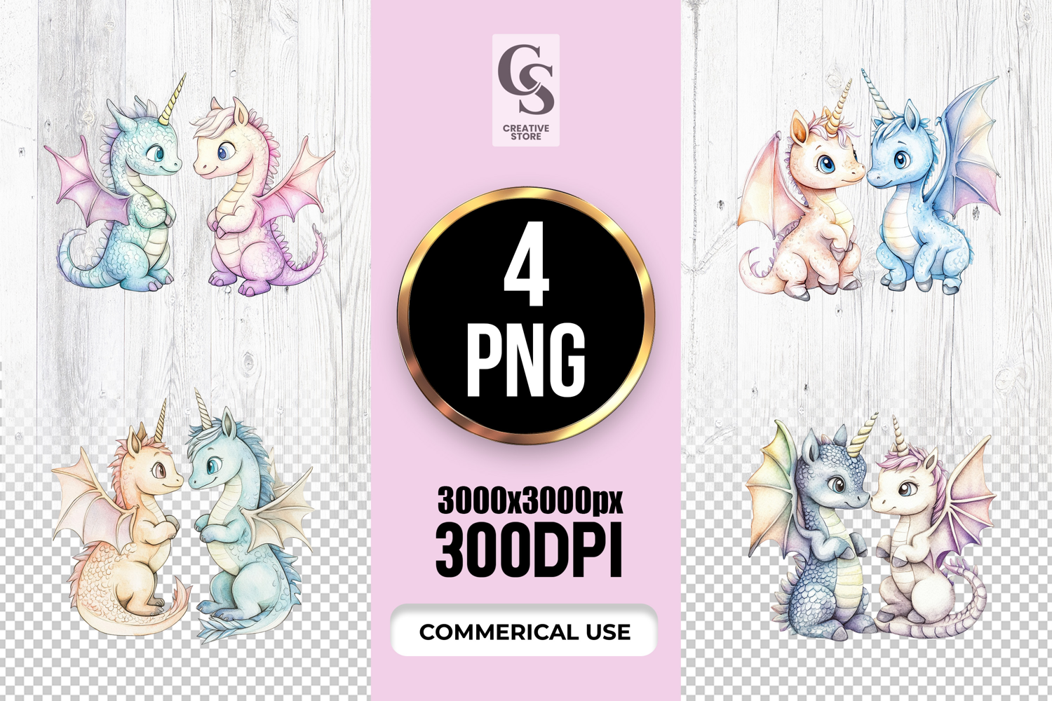 4 Pastel Unicorn Dragon Duo Clipart Sublimation PNG Files Perfect for Greeting Cards, Invitations, Junk Journal, Party Decor, Scrapbooking and many other craft projects .