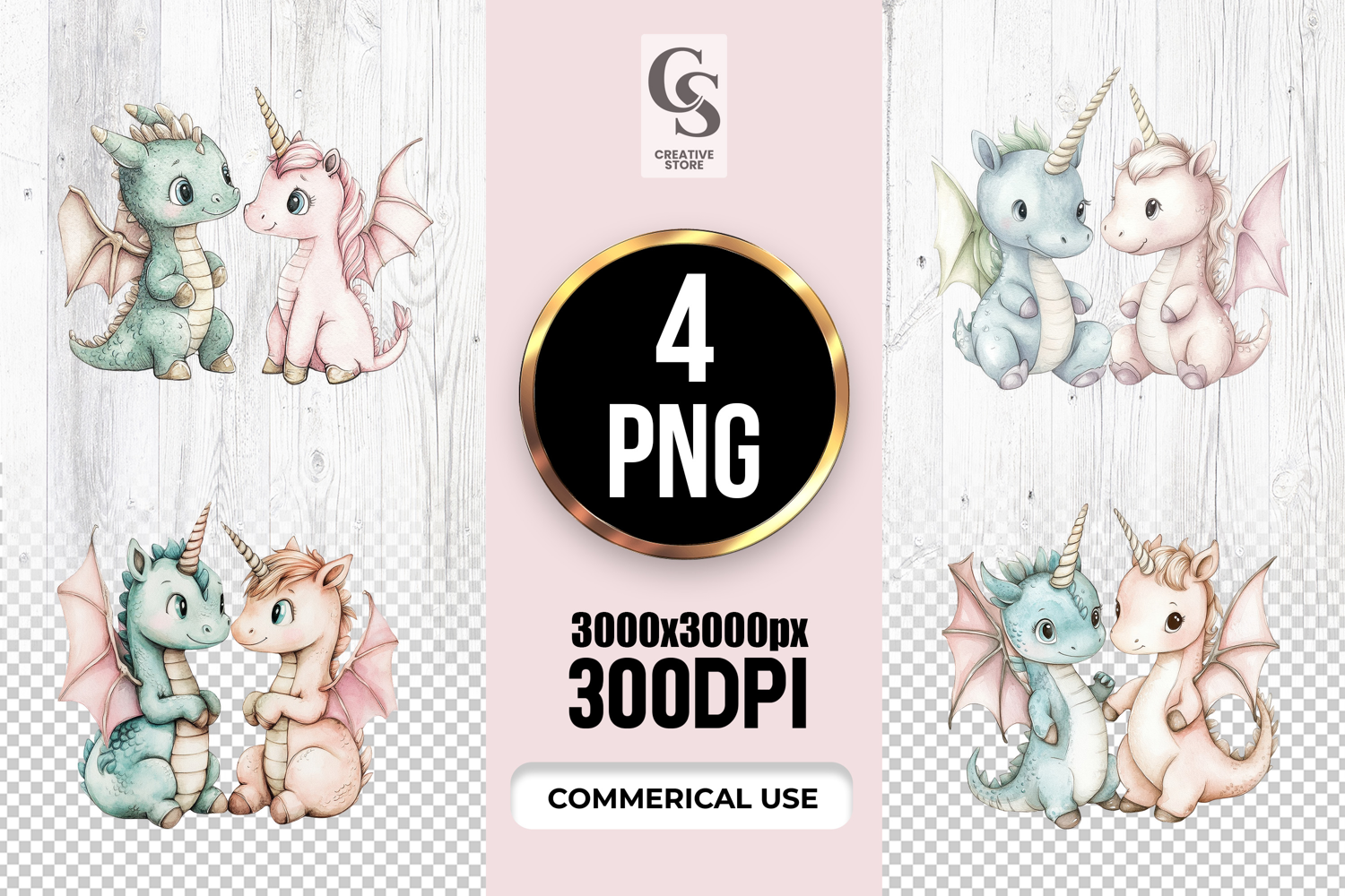 4 Cute Unicorn Dragon Couple Clipart Sublimation PNG Files Perfect for Greeting Cards, Invitations, Junk Journal, Party Decor, Scrapbooking and many other craft projects .