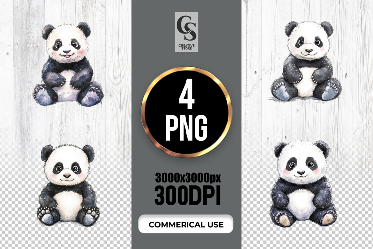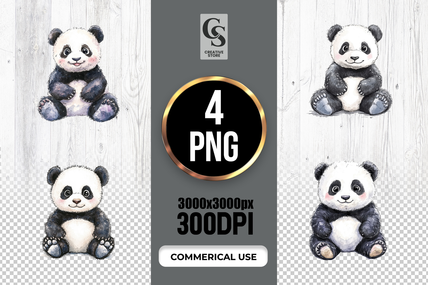 4 Cute Panda Bear Watercolor Clipart Sublimation PNG Files Perfect for Greeting Cards, Invitations, Junk Journal, Party Decor, Scrapbooking and many other craft projects .