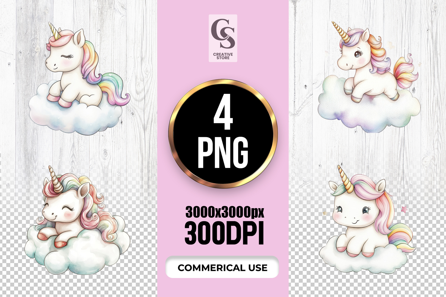 4 Cute Rainbow Unicorn Watercolor Clipart Sublimation PNG Files Perfect for Greeting Cards, Invitations, Junk Journal, Party Decor, Scrapbooking and many other craft projects .