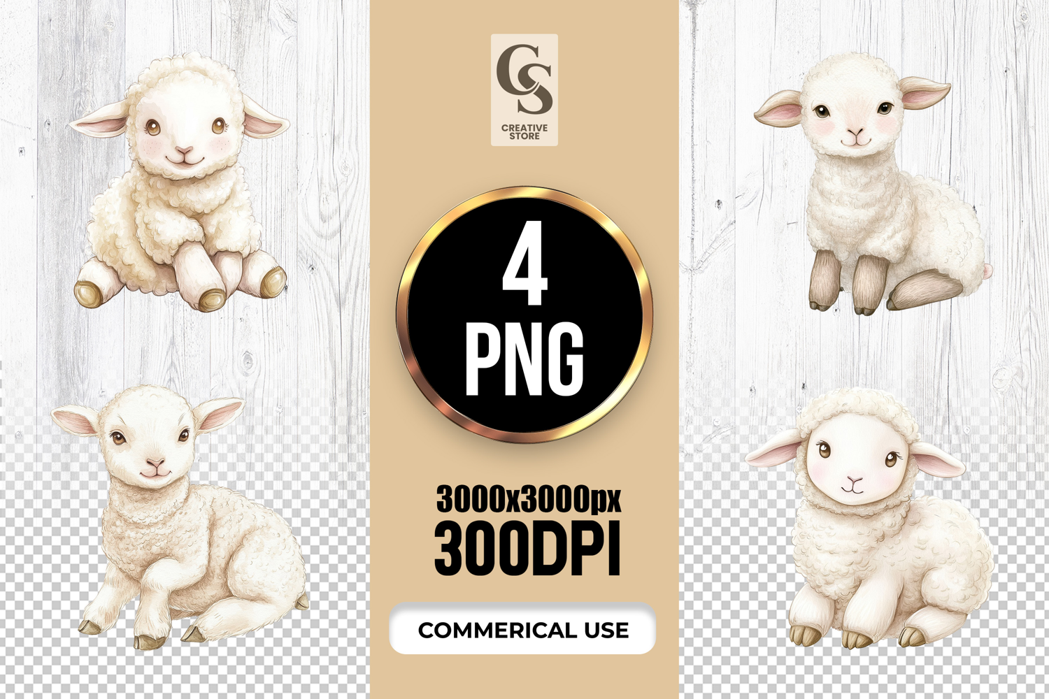 4 Cute Baby Lamb Watercolor Clipart Sublimation PNG Files Perfect for Greeting Cards, Invitations, Junk Journal, Party Decor, Scrapbooking and many other craft projects .