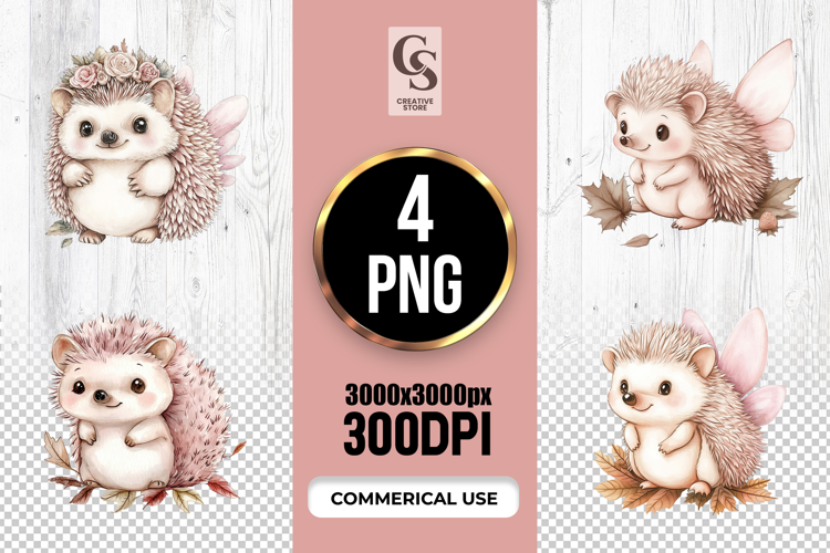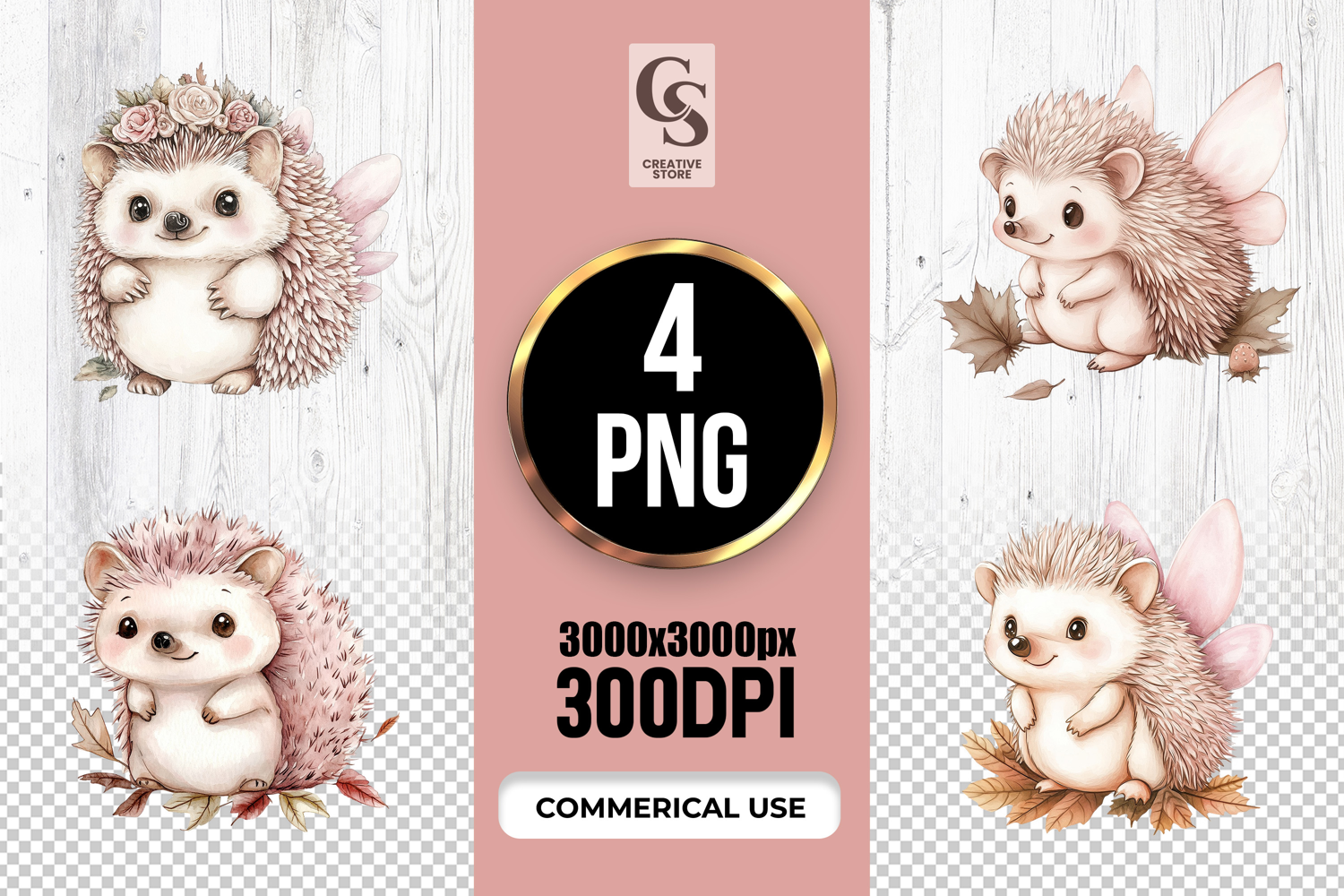4 Cute Fairy Hedgehog Watercolor Clipart Sublimation PNG Files Perfect for Greeting Cards, Invitations, Junk Journal, Party Decor, Scrapbooking and many other craft projects .
