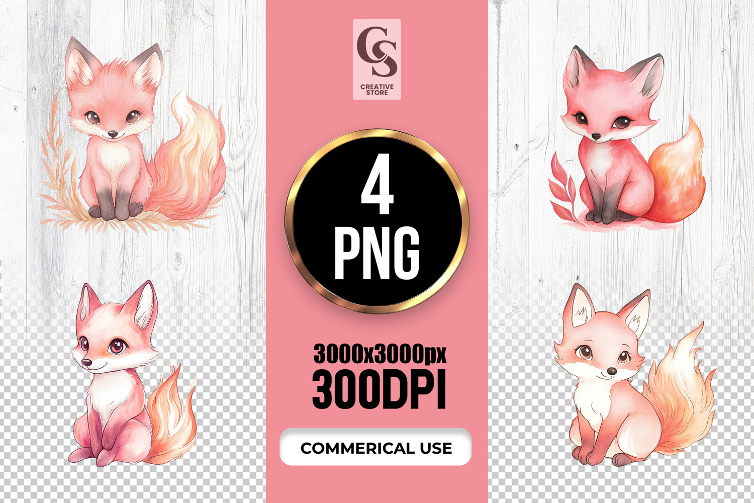 4 Cute Pink Fox Watercolor Clipart Sublimation PNG Files Perfect for Greeting Cards, Invitations, Junk Journal, Party Decor, Scrapbooking and many other craft projects .