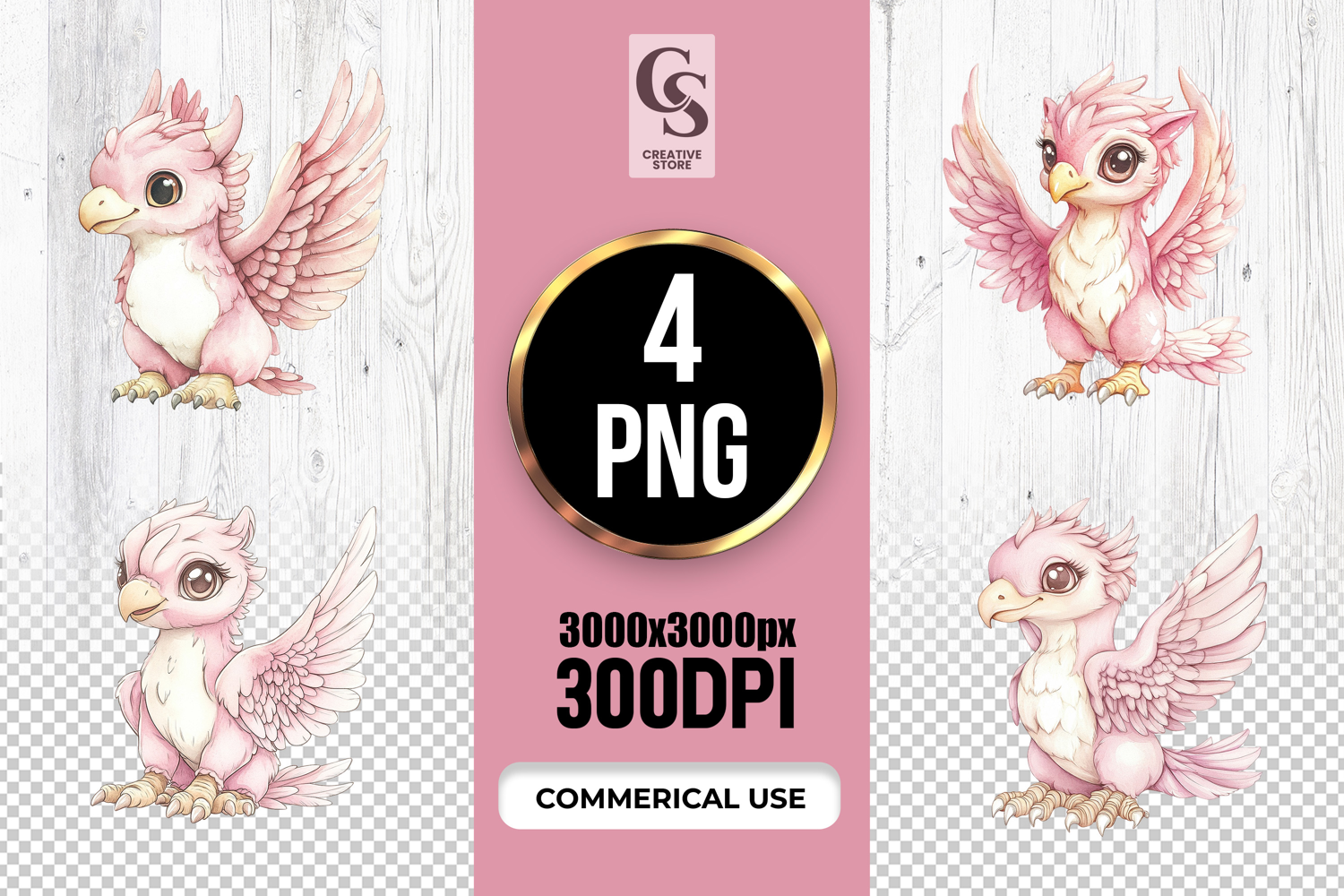 Cute Pink Griffin Watercolor Clipart Sublimation PNG example image 1