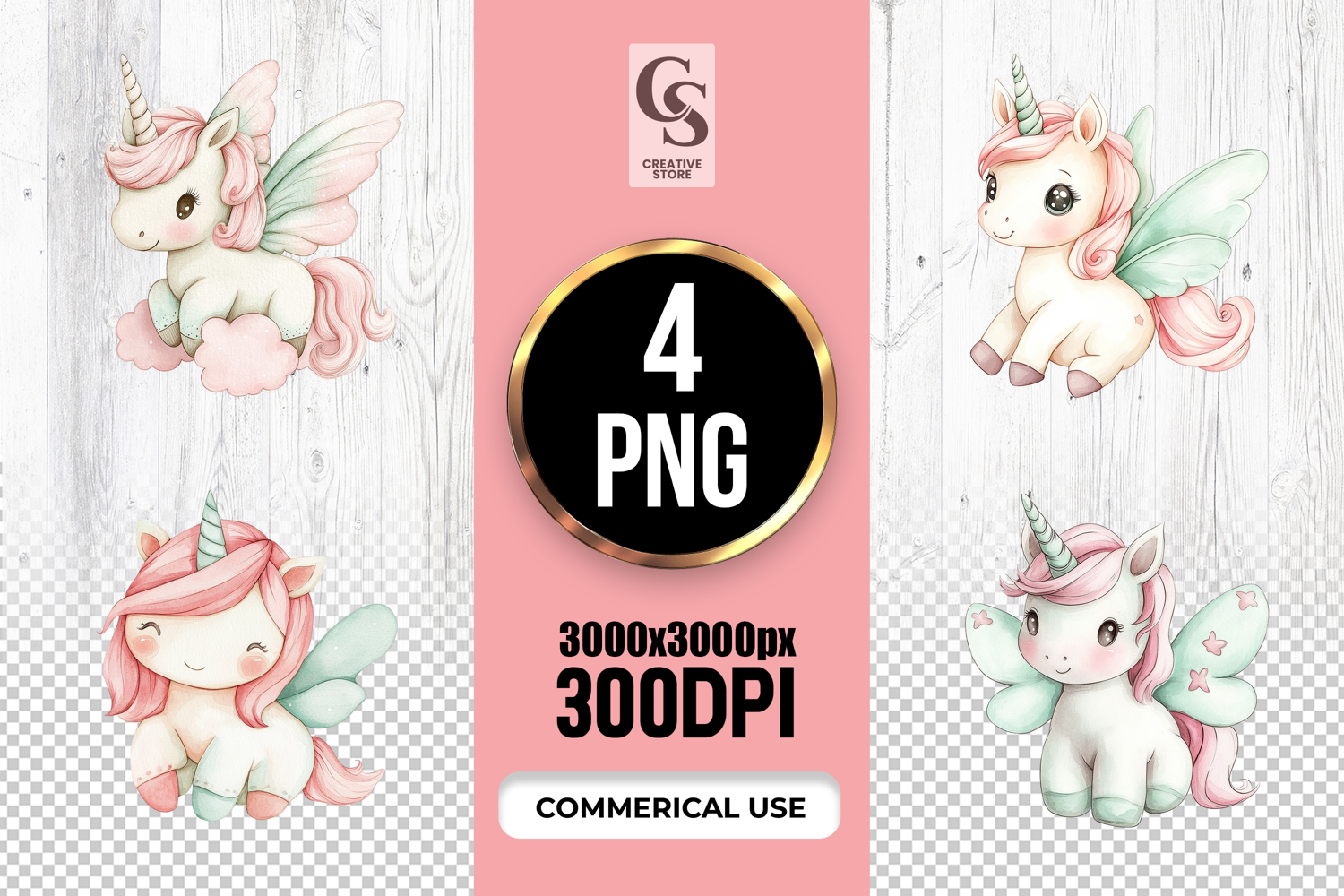 4 Pastel Fairy Unicorn Watercolor Clipart Sublimation PNG Files Perfect for Greeting Cards, Invitations, Junk Journal, Party Decor, Scrapbooking and many other craft projects .