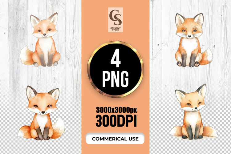 4 Watercolor Red Fox Clipart Sublimation PNG Files Perfect for Greeting Cards, Invitations, Junk Journal, Party Decor, Scrapbooking and many other craft projects .