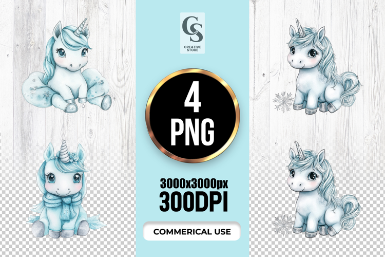 4 Cute Blue Baby Unicorn Clipart Sublimation PNG Files Perfect for Greeting Cards, Invitations, Junk Journal, Party Decor, Scrapbooking and many other craft projects .