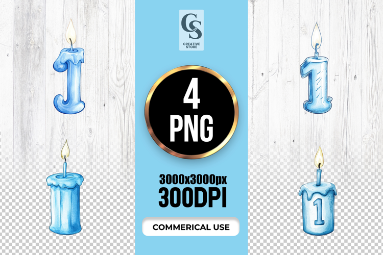 4 Blue Number One Candle Clipart Sublimation PNG Files Perfect for Greeting Cards, Invitations, Junk Journal, Party Decor, Scrapbooking and many other craft projects .
