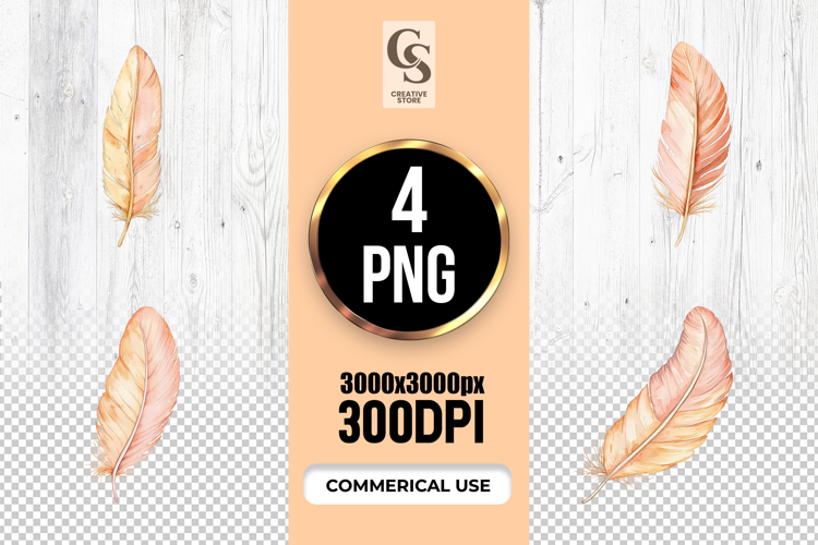 4 Boho Feather Watercolor Clipart Sublimation PNG Files Perfect for Greeting Cards, Invitations, Junk Journal, Party Decor, Scrapbooking and many other craft projects .