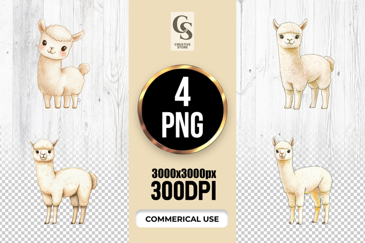 4 Cute Watercolor Alpaca Clipart Sublimation PNG Files Perfect for Greeting Cards, Invitations, Junk Journal, Party Decor, Scrapbooking and many other craft projects .