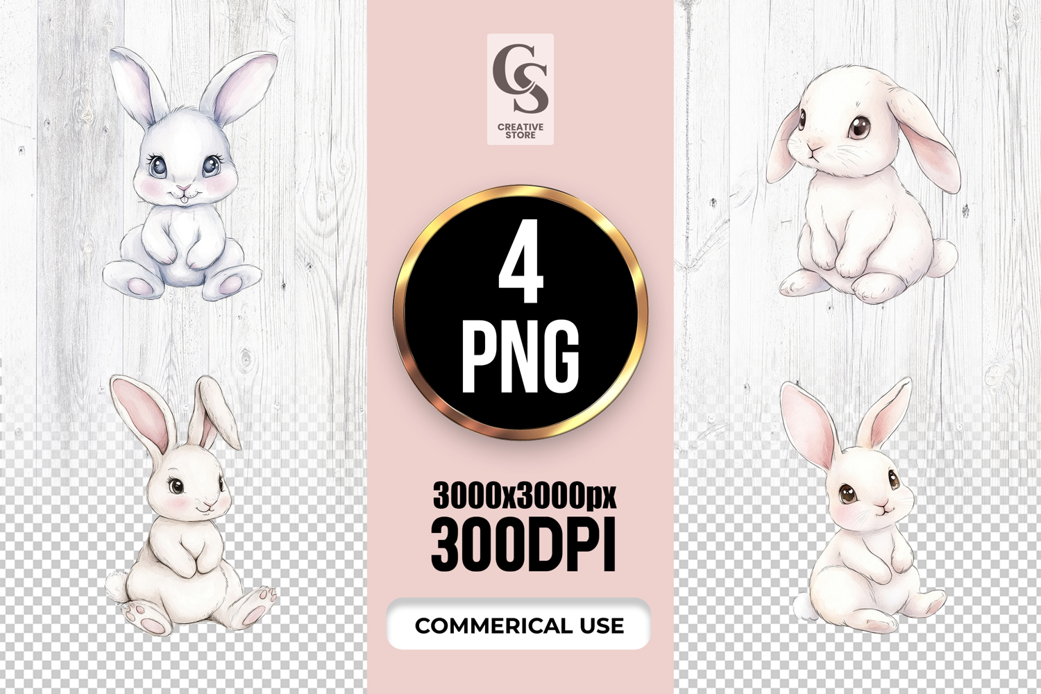 4 Watercolor Cute Bunny Rabbit Clipart Sublimation PNG Files Perfect for Greeting Cards, Invitations, Junk Journal, Party Decor, Scrapbooking and many other craft projects .