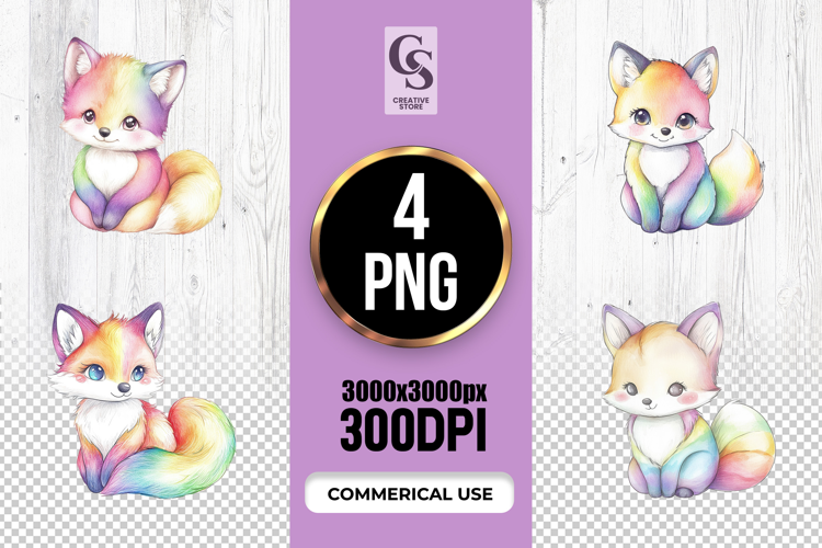 4 Rainbow Fox Cute Animal Clipart Sublimation PNG Files Perfect for Greeting Cards, Invitations, Junk Journal, Party Decor, Scrapbooking and many other craft projects .