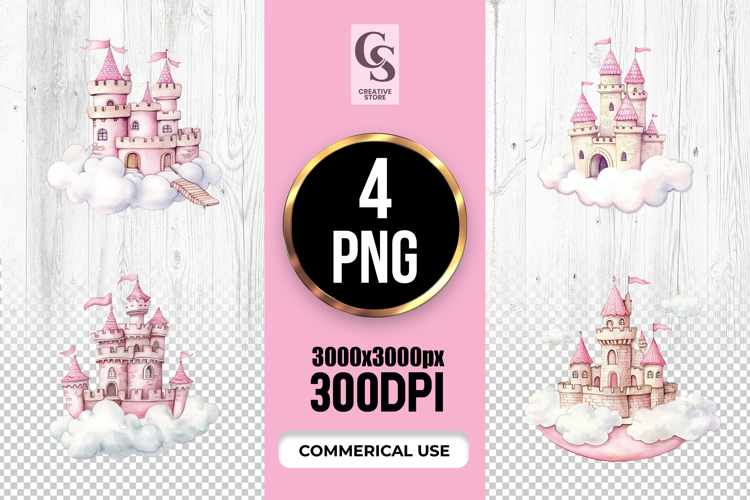 Similar Design Products to Pink Watercolor Cloud Castle Clipart Sublimation PNG