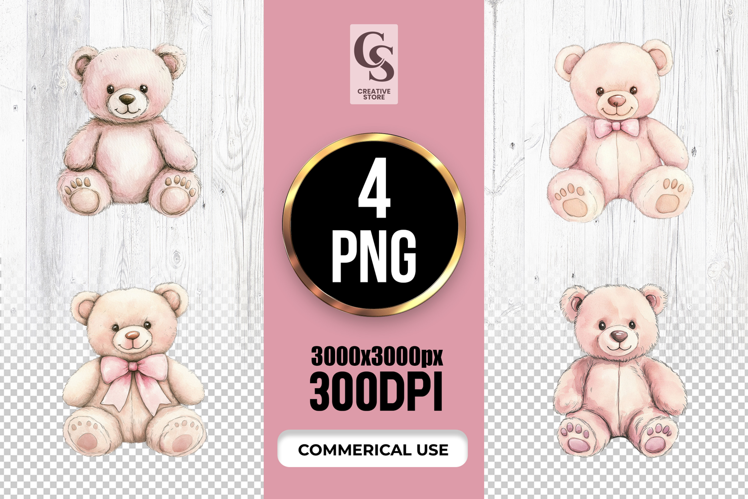 Watercolor Teddy Bear Printable Wall Art Teddy Bear Clipart Teddy Bear Png Nursery Decor Clipart Teddy Bear Sublimation Cute Bear Illustration Pastel Teddy Bear Baby Room Png Soft Pink Bear