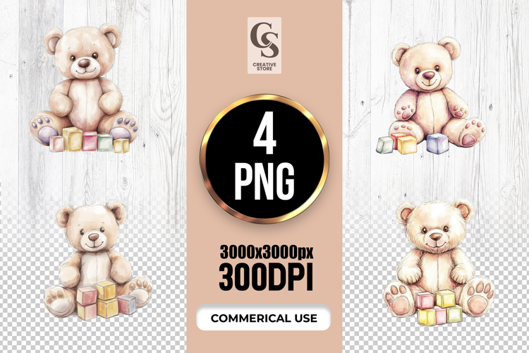 4 Teddy Bear With Toy Blocks Clipart Sublimation PNG Files Perfect for Greeting Cards, Invitations, Junk Journal, Party Decor, Scrapbooking and many other craft projects .