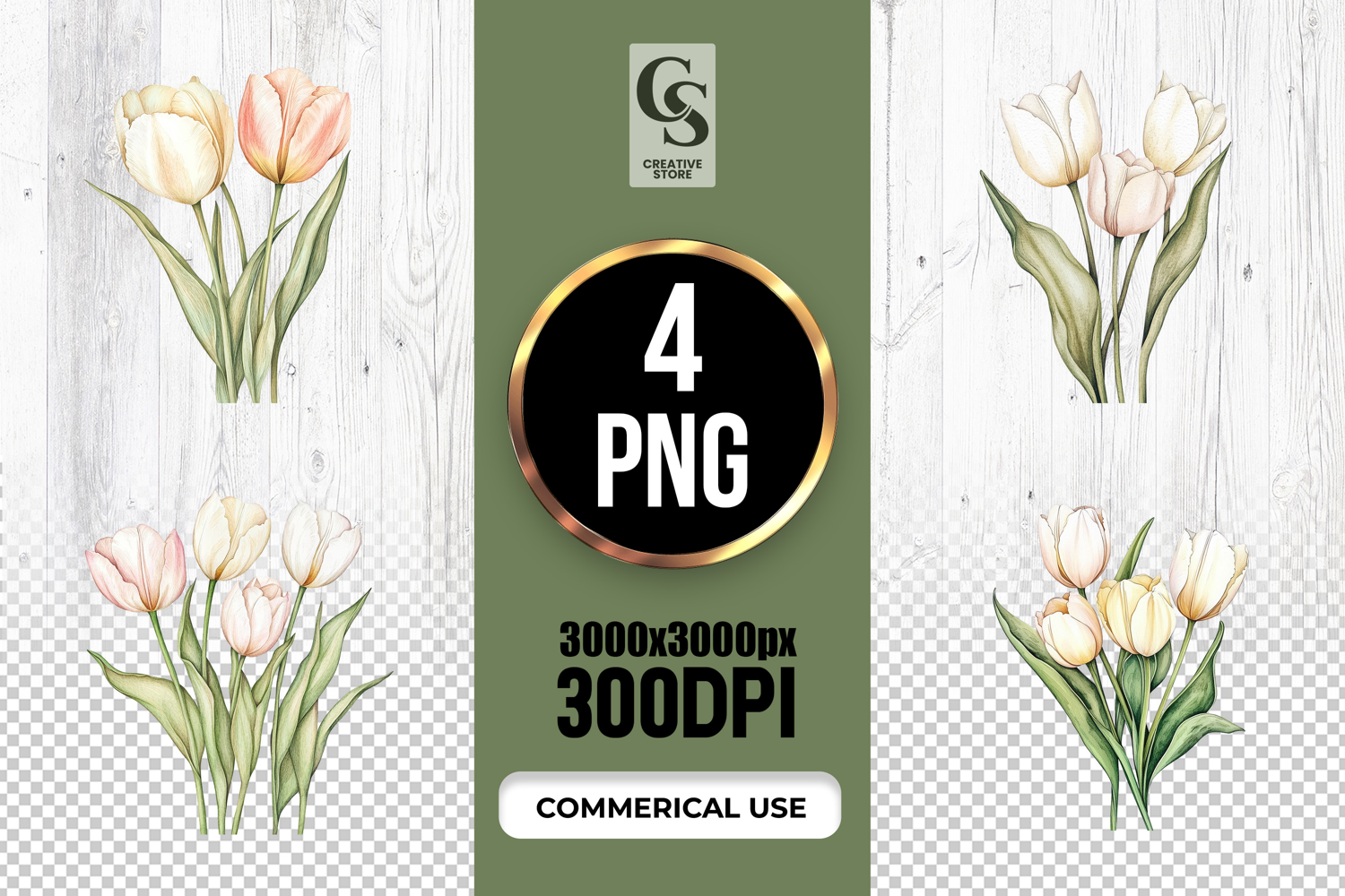 4 Watercolor Tulip Flower Clipart PNG Files Perfect for Greeting Cards, Invitations, Junk Journal, Party Decor, Scrapbooking and many other craft projects .