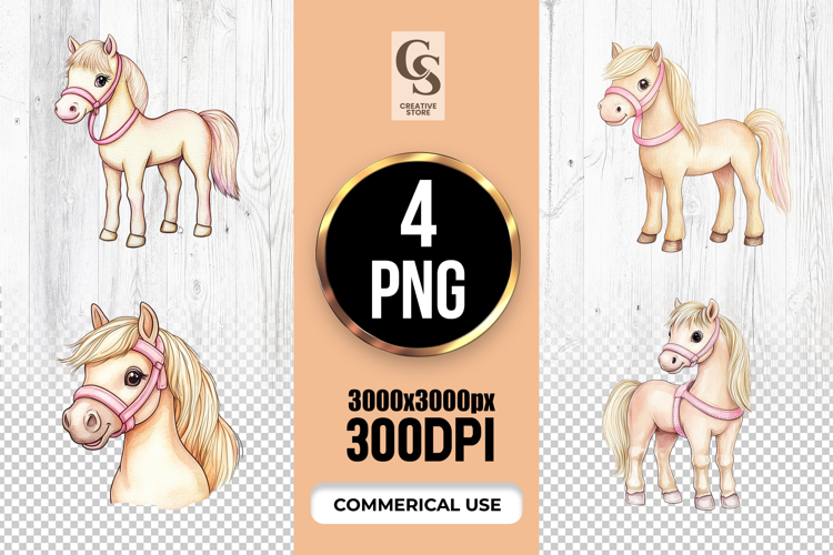 4 Cute Pony Illustration Clipart Sublimation PNG Files Perfect for Greeting Cards, Invitations, Junk Journal, Party Decor, Scrapbooking and many other craft projects .