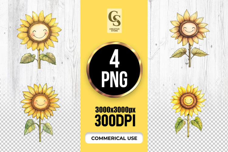 4 Cute Sunflower Smile Clipart Sublimation PNG Files Perfect for Greeting Cards, Invitations, Junk Journal, Party Decor, Scrapbooking and many other craft projects .