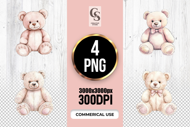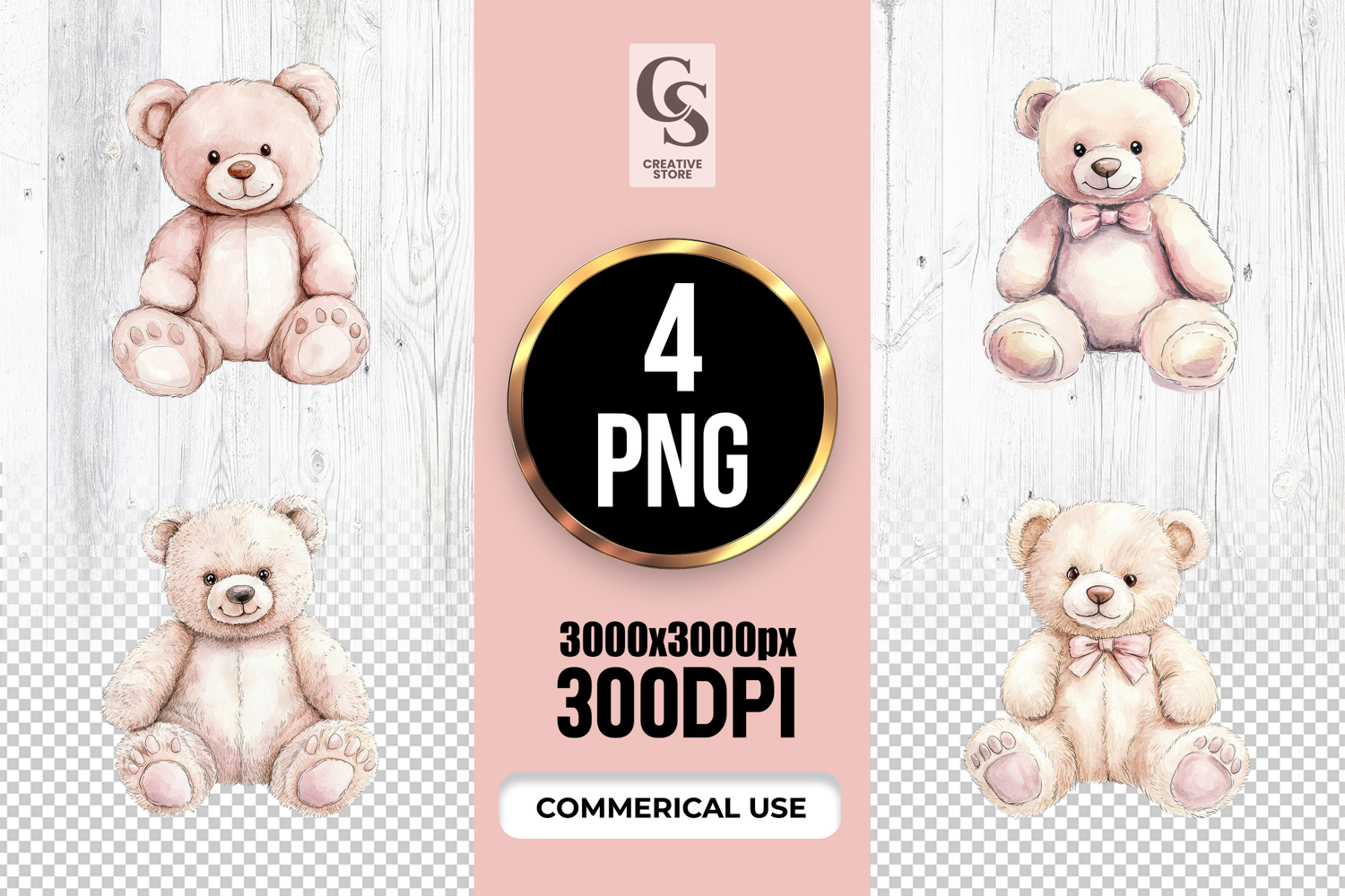 4 Cute Teddy Bear Clipart Sublimation PNG Files Perfect for Greeting Cards, Invitations, Junk Journal, Party Decor, Scrapbooking and many other craft projects .