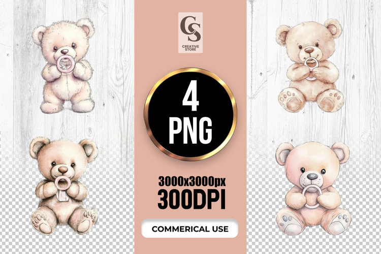 4 Baby Teddy Bear With Pacifier Clipart PNG Files Perfect for Greeting Cards, Invitations, Junk Journal, Party Decor, Scrapbooking and many other craft projects .