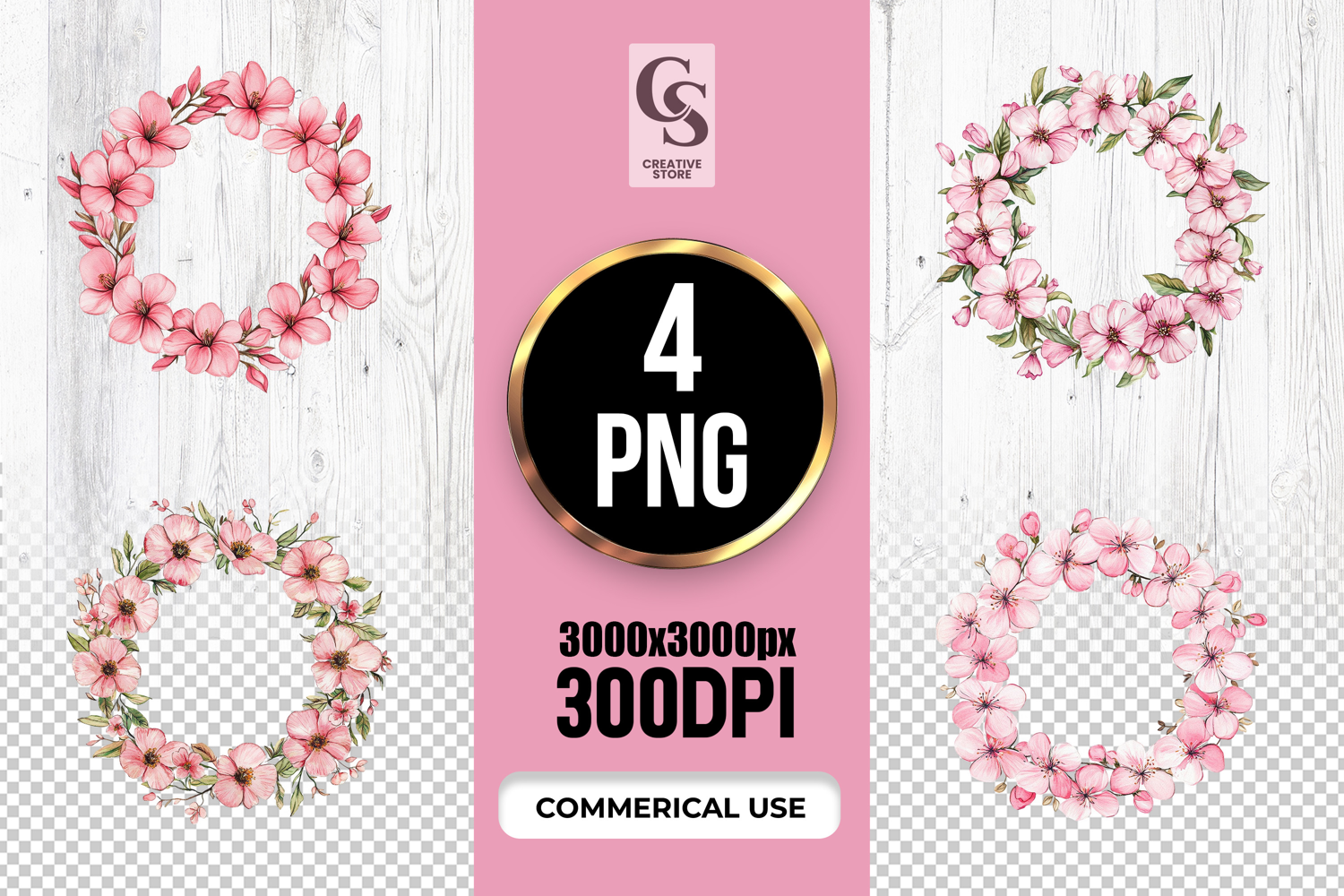 4 Pink Blossom Wreath Clipart Sublimation PNG Files Perfect for Greeting Cards, Invitations, Junk Journal, Party Decor, Scrapbooking and many other craft projects .